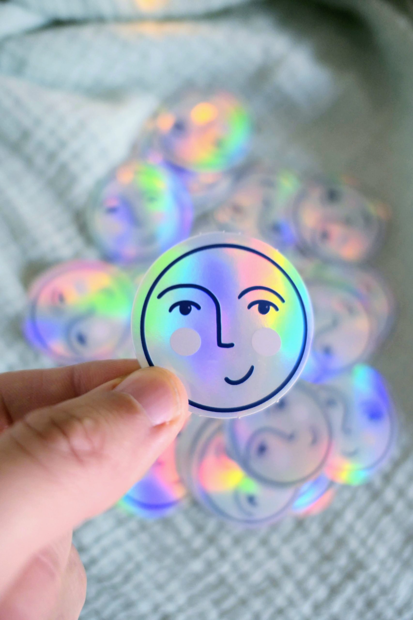 Inspiré du motif lune de la collection Matin d’Hiver, ce sticker holographique capte les reflets comme un ciel d’hiver au petit matin. Parfait pour personnaliser carnet, ordinateur ou une gourde avec une touche de poésie.