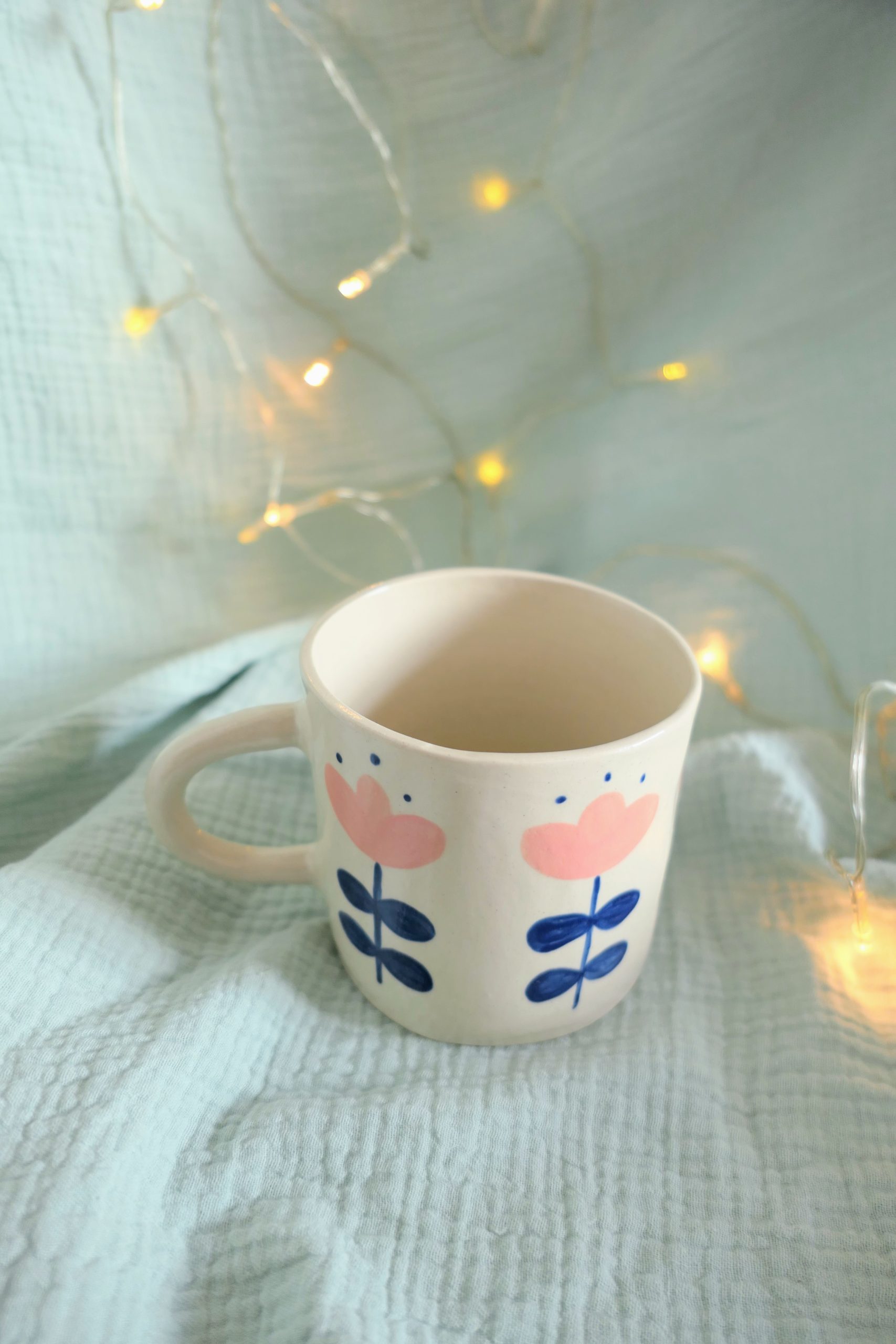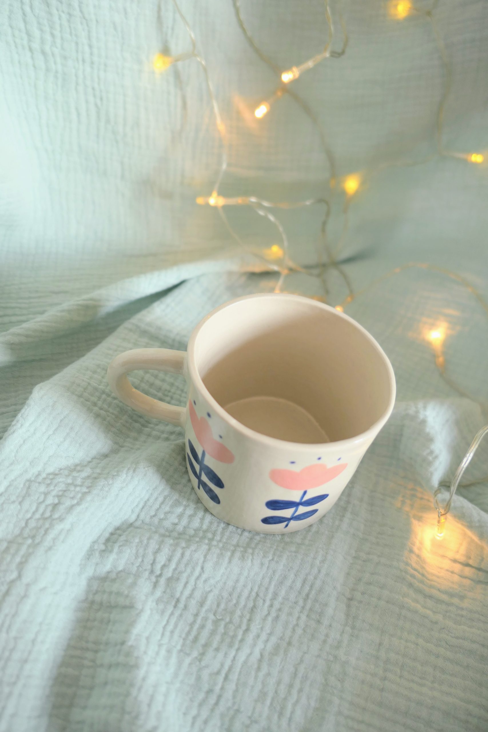 Pour les matins d’hiver où l’on cherche un peu de douceur, cette tasse à motifs fleurs, est un petit rituel en soi. Modelée et peinte à la main, elle accompagne vos matins d’hiver.