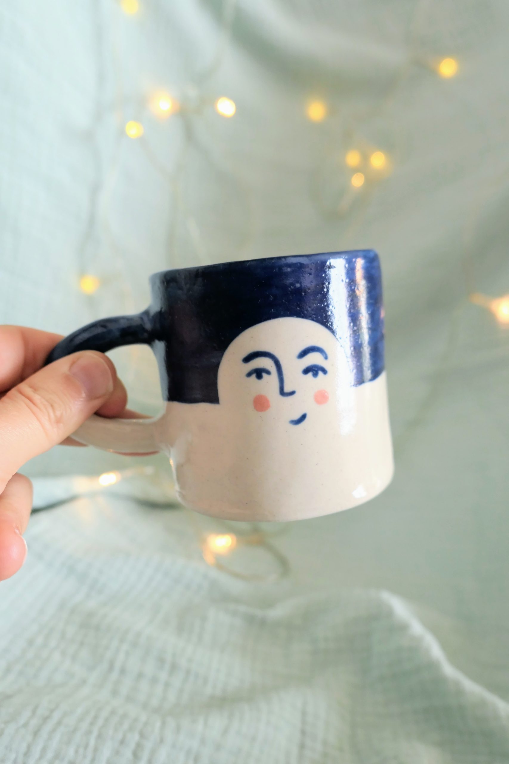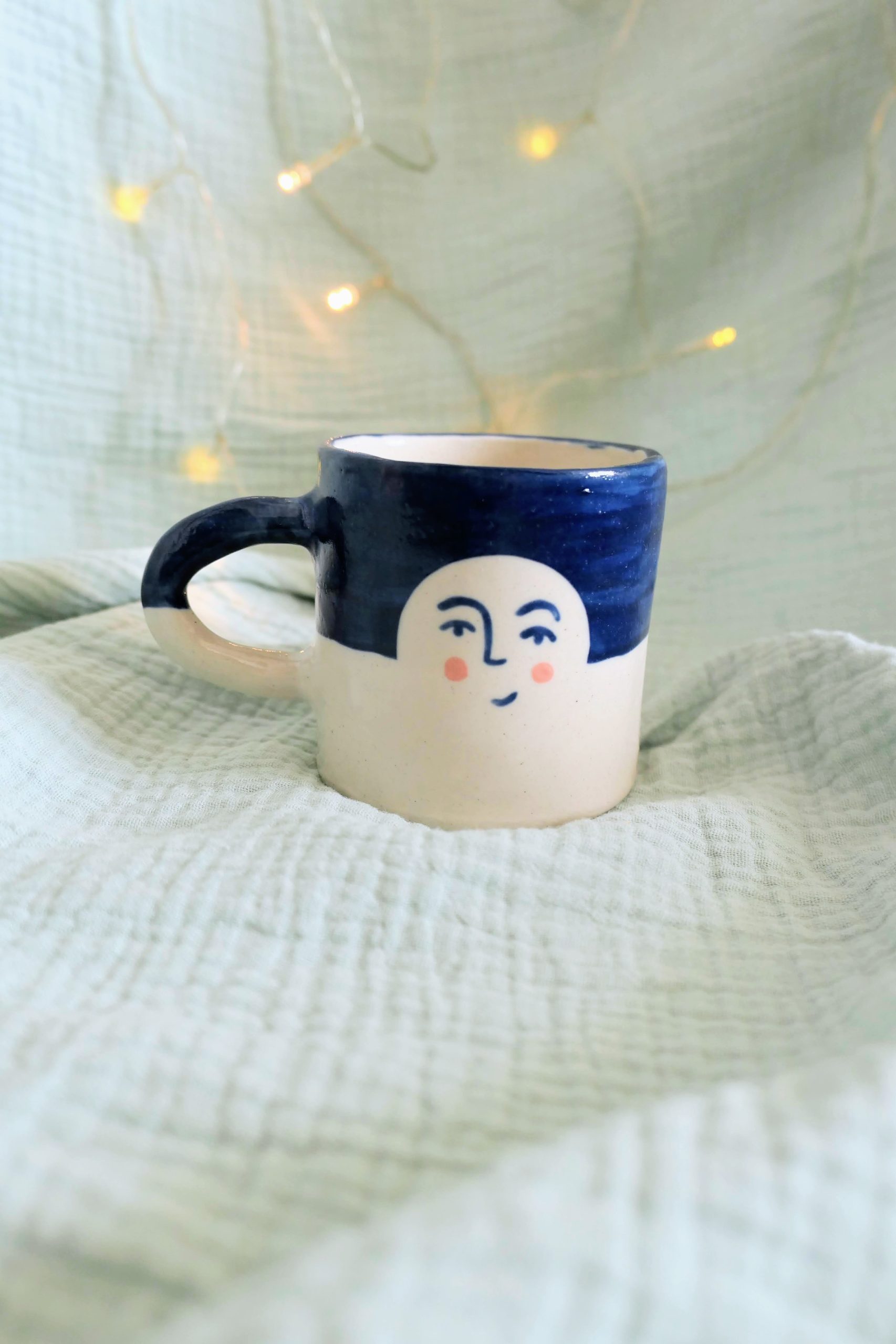 Pour les matins d’hiver où l’on cherche un peu de douceur, cette tasse à motifs lune, est un petit rituel en soi. Modelée et peinte à la main, elle accompagne vos matins d’hiver.